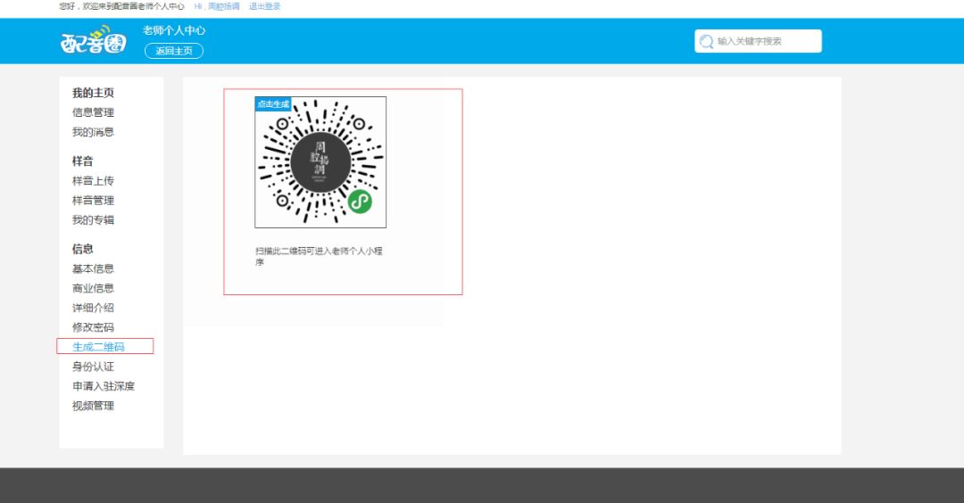 进入《配音圈》官网注册登录,生成个人声音名片和小程序码